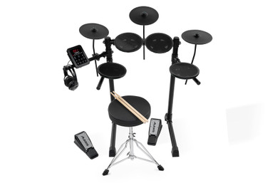 Includes mesh drums, cymbals, pedals, accessories and the Turbo X module, giving new drummers a full setup that is ready to play immediately. - Compact and Quiet Mesh Design: