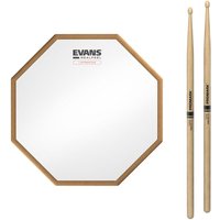 EVANS Drum Sticks – Accessories Practice Pads The RealFeel Evans Attacktile Mountable Drum Pad & Promark Rebound 5A Hickory Sticks 10 Inch is ideal for drummers who want a sharper more responsive practice experience. The pads UV-coated surface offers enhanced attack and louder feedback helping you hear and feel each stroke clearly. It closely mimics the feel of a real drum making it a reliable substitute for acoustic kit practice.Also included are the ProMark Rebound 5A drumsticks crafted from durable American hickory with a long taper for better balance and speed. Their acorn tips expand the sweet spot making each hit more articulate and expressive. Combined with ProMarks ProMatch system the sticks offer excellent consistency in feel and performance so you can focus on improving without distraction.