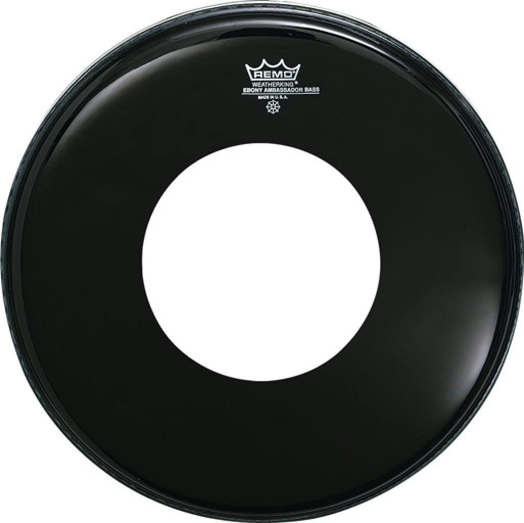 Remo 22″ Ebony Ambassador Bass Drum Head with Hole
