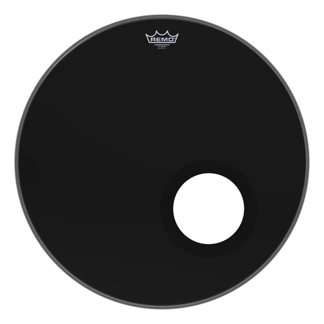 The Powerstroke® P3 Ebony® 5″ Black DynamO features midrange and low end resonant tones with a pre-cut 5″ hole with a DynamO reinforcement ring installed. Constructed with 1-ply 10-mil Ebony® film with a 10-mil inlay ring and 5″ Black DynamO, the Powerstroke® P3 Ebony® drumhead provides a perfect balance of mid and low tones that has made Powerstroke® Ebony® of Remo’s most popular resonant Bass drumheads. Available in sizes 18” – 26”.
