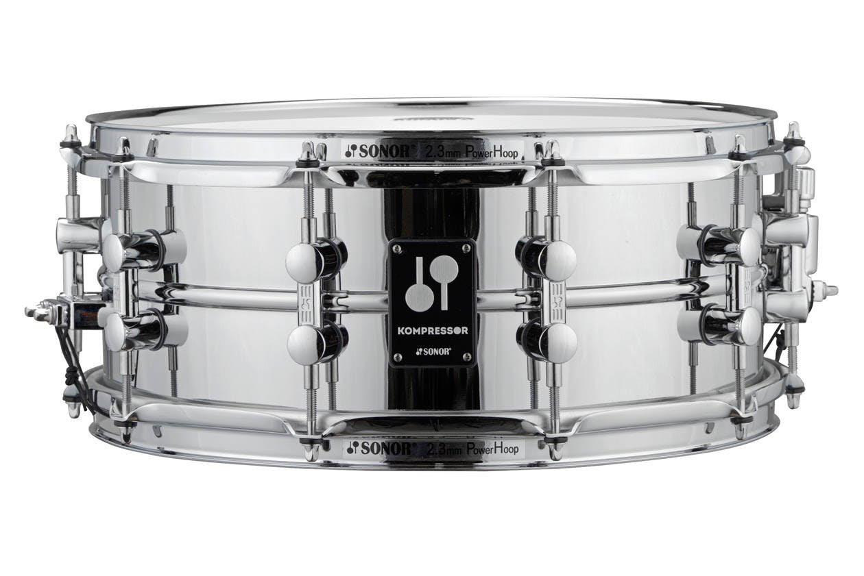 JustDrums can deliver a tasty SONOR Snare Drum right to your door ! The SONOR Kompressor Snare Drum 14″ x 5.75″, Steel, Chrome is available with our total roadie service. This Snare Drum is a New product, it’s In stock and ready to go. Read more below for images, specifications and some of the best prices in the UK.