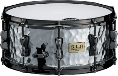 This TAMA S.L.P. Expressive Hammered Steel snare drum features a 14″x6″ 1.2mm hammered steel shell. The Shallow depth hammering, glossy finish, and black nickel hardware deliver tonal complexity and sophisticated look. Outfitted with 2.3mm triple flange hoops and Starclassic Carbon Steel snare wires, this snare drum offers a crisp, dry attack with sensitive articulation to perfectly complement the naturally bright and clear steel shell. All of these features come together to create a uniquely musical and balanced snare drum, capable of being a workhorse snare in a wide variety of music styles.