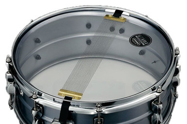This drum features a seamless 1.2 mm Aluminum shell with a center bead. The 8-lug Steel Mighty Hoops make for a crisp sound with short sustain. The vintage look and sound are reminiscent of the early years of popular aluminum snare drums.